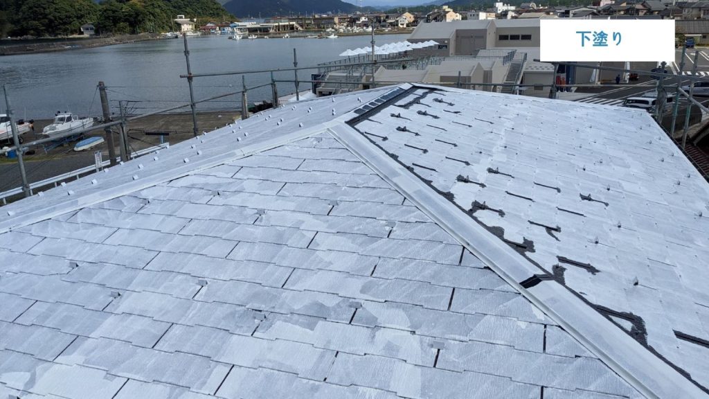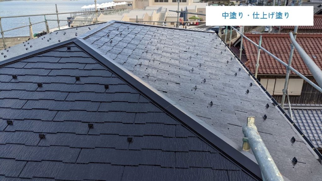 屋根も外壁同様、高圧洗浄後、同製「サーモテックシーラー」で下塗り、「スーパーシャネツサーモSi」艶有り 色:ブラック を2回塗装で仕上げました
