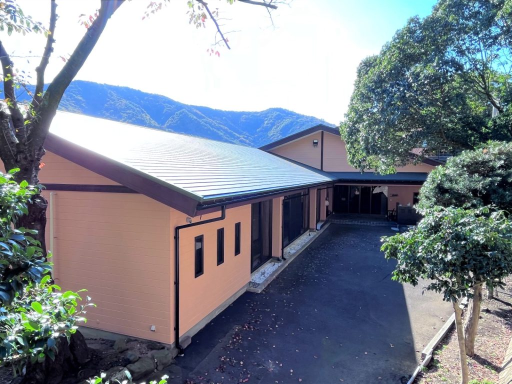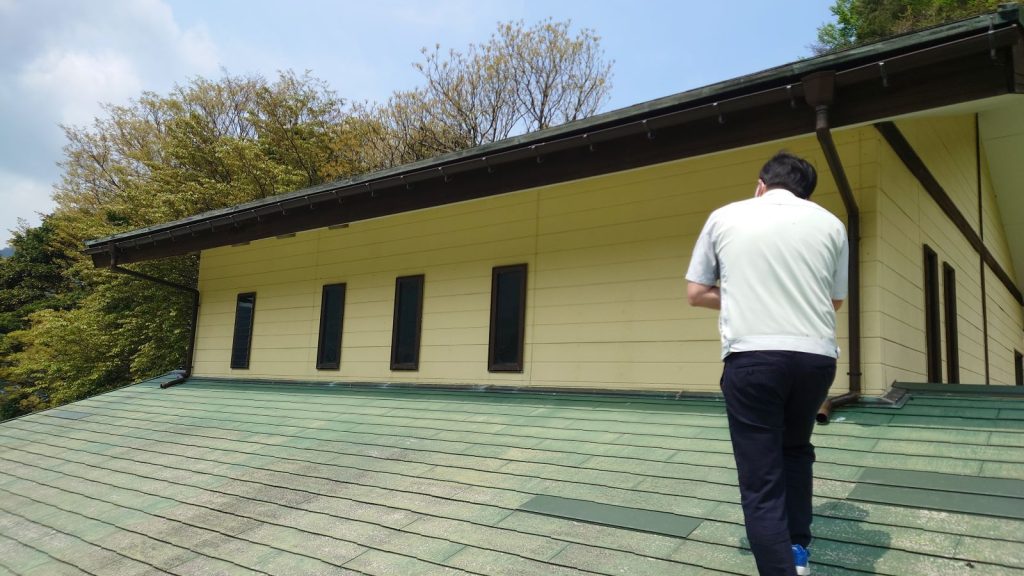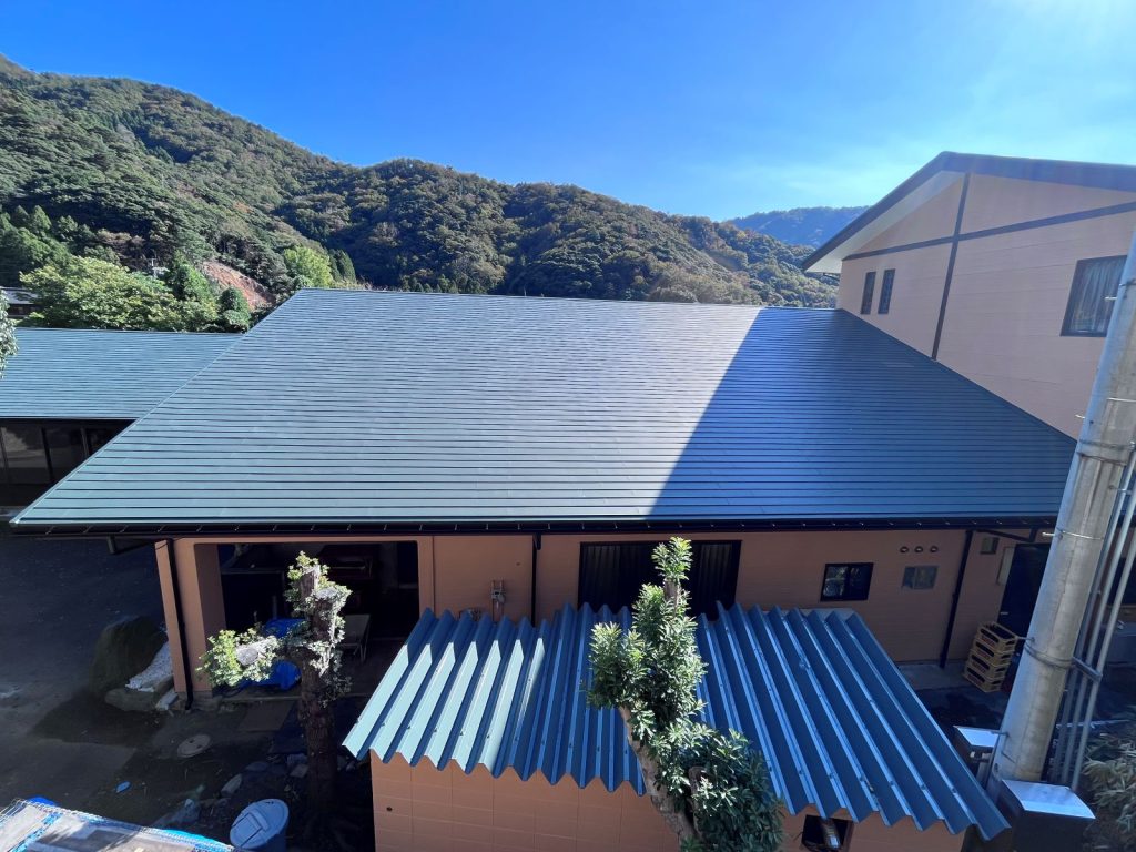 渡り廊下でつながる屋根は 850㎡以上あり、屋根自体の劣化状況から ご希望であった塗装はお勧めできない事を伝え、カバー工法のシーガードを提案させていただきました