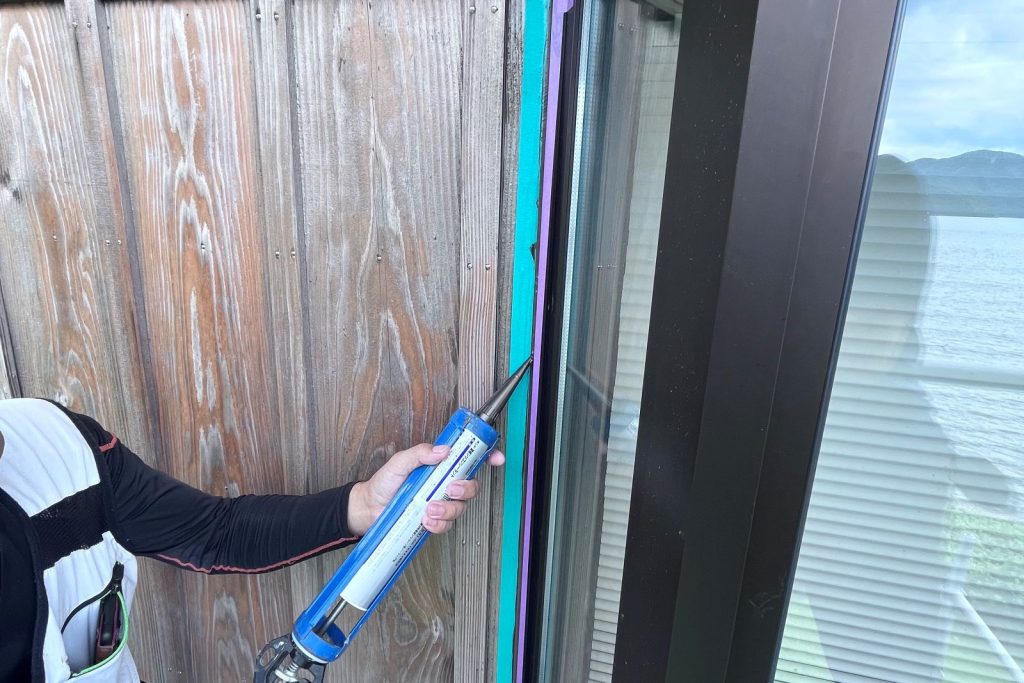 木材が呼吸できる水系木材保護塗料である「ガードラックアクア(和信ペイント)」を2回塗布し、木目をつぶさないエナメル調に仕上げています