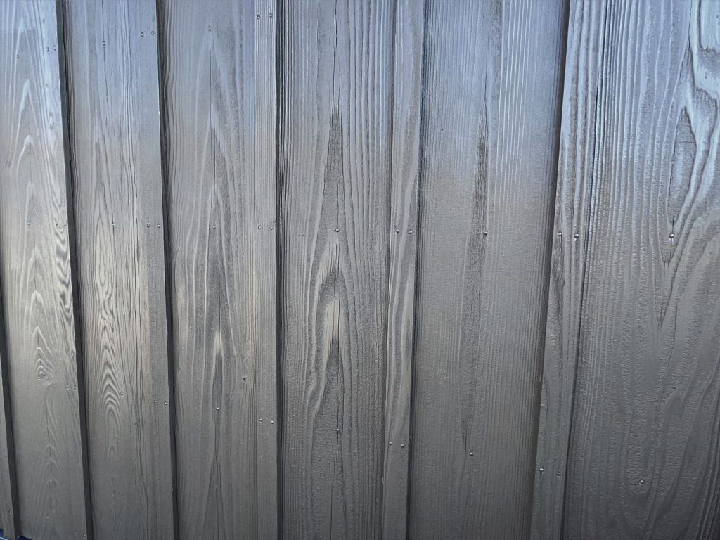 焼杉板とは、杉板の表面を焼いて炭化させたもので、焼くことで炭化層ができ、腐食に強く優れた耐久性を持つものになります